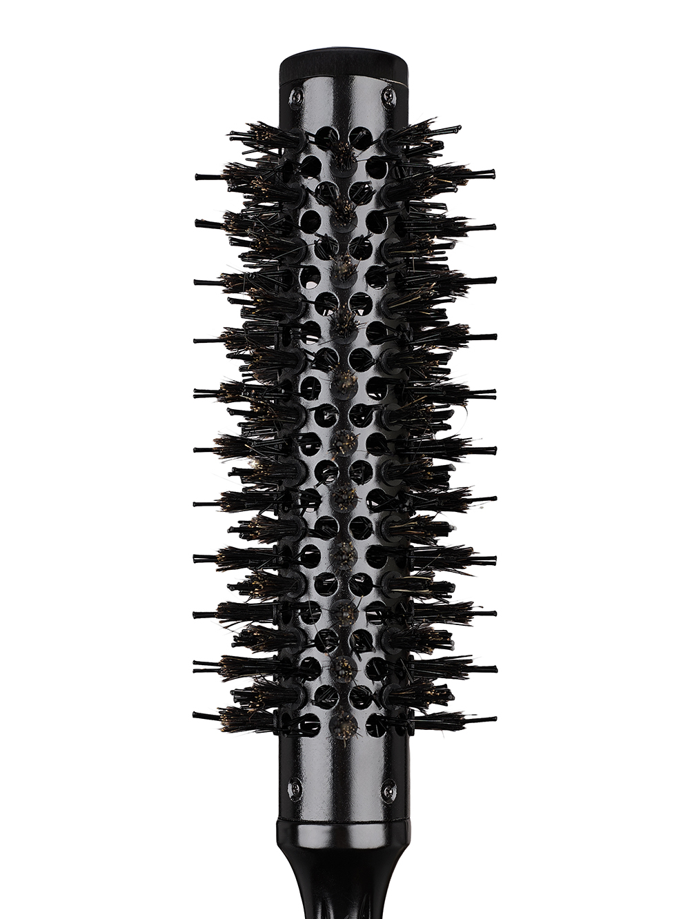 Комбинированная щетина (натуральная + нейлон) хорошо захватывает прядь и помогает вести её ровно, без хаоса и “пушения”. Волосы легче разглаживаются и вытягиваются, укладка получается аккуратнее, а блеск — заметнее. За счёт оптимальной плотности щетины не приходится делать лишние повторные проходы.