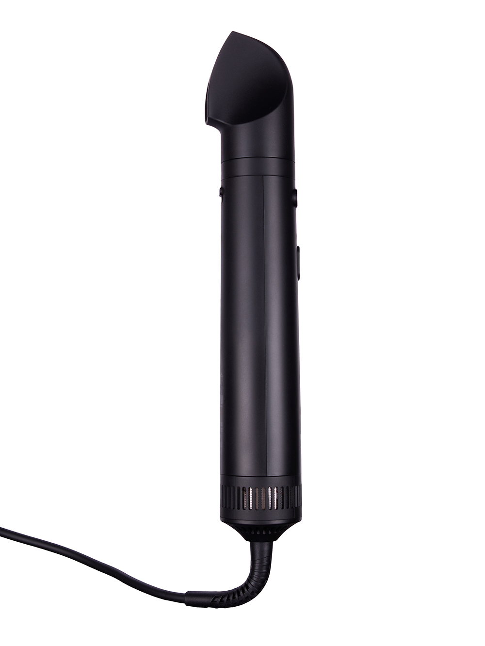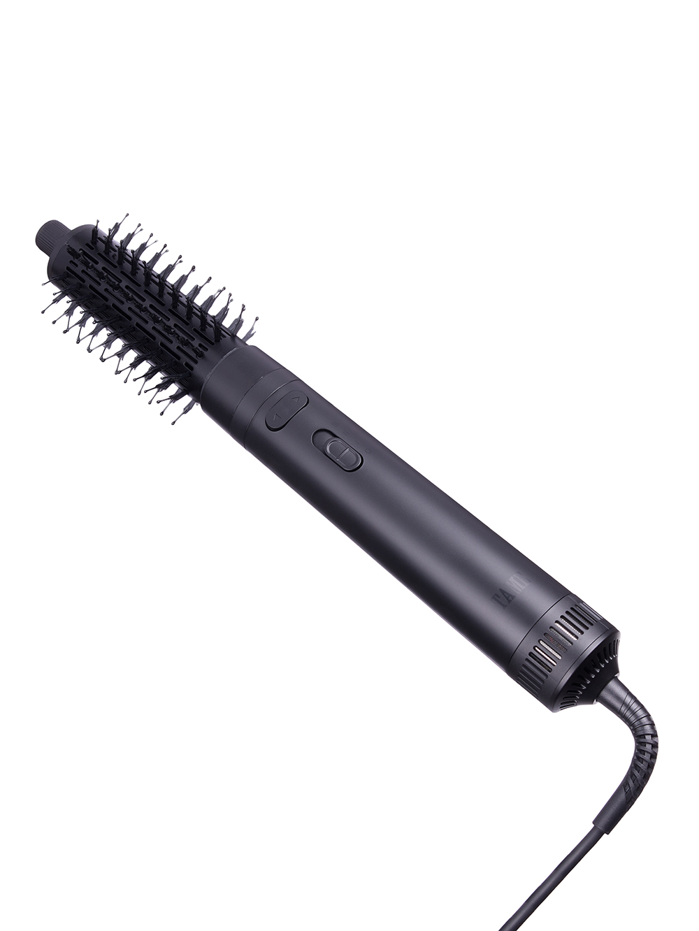 Главная особенность — автоматическое вращение насадки в выбранную сторону. Вы задаёте направление (влево/вправо), и щётка сама ведёт прядь: легче поднять корни, подкрутить кончики, вытянуть длину. Руки не устают, потому что вам не нужно одновременно крутить брашинг и держать фен. Заменяет связку “фен + брашинг”.