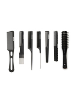 Универсальность - здесь есть и "хвостики" для разделения прядей, и бережные редкозубые расчески для поврежденных волос, и расчески для тушевки, и "скелетная щетка" для работы под феном.