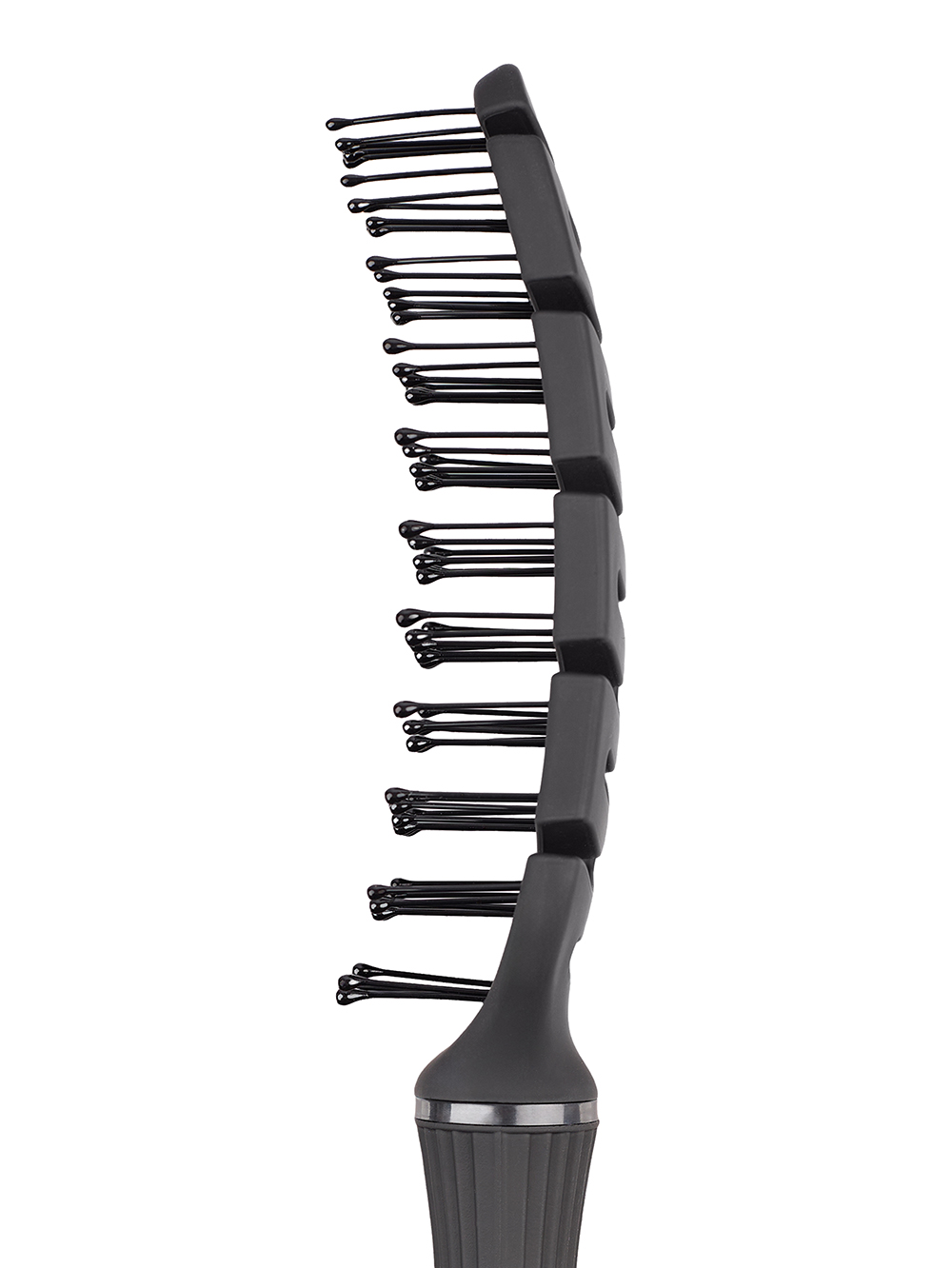 Удобная форма ручки обеспечивает стабильный хват и точный контроль движений. За счёт компактной рабочей поверхности расчёска легко маневрирует между зонами и подходит для коротких стрижек, детальной проработки формы и аккуратной прикорневой укладки.